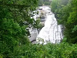 High Falls, on the Little River in Transylvania County, is a 125 ft (38 m) waterfall located in the DuPont State Forest, in the Blue Ridge Mountains of North Carolina.