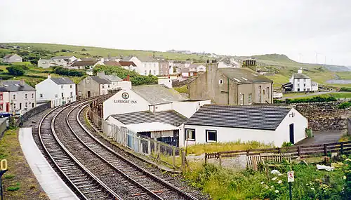Harrington railway station opened in 1846 on the Whitehaven Junction Railway, which linked the earlier Maryport and Carlisle Railway with Workington and Whitehaven via Harrington.[4] Other railways followed, which were primarily built to cater for goods traffic associated with the area's mines and industry, although did also run passenger services.[5] The Cleator and Workington Junction Railway opened in 1879 with a station at High Harrington,[6] and the Lowca Light Railway opened in 1913, with a number of small halts in the Harrington area.[7]