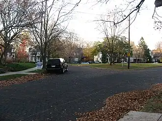 Highland Park Neighborhood Historic District is a national historic district located at Lafayette, Tippecanoe County, Indiana. The district encompasses 240 contributing buildings, 1 contributing site, and 1 contributing structure in a planned residential subdivision of Lafayette. It developed between about 1892 and 1945 and includes representative examples of Queen Anne, Tudor Revival, and Bungalow / American Craftsman style architecture. Notable contributing resources include the Blistain Axel Merritt House (1914), John Wagner Jr. House (c. 1893), John Ross House (c. 1895), and Bicycle Bridge (1924).[2]