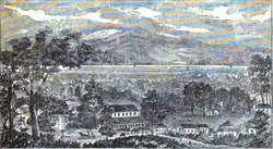 Highland Springs began as a resort in the 1870s.[2] The first Highland Springs post office opened in 1875 and closed in 1880. The Highland post office opened in 1880, changed its name to Highland Springs in 1884, and closed in 1921.[2] An 1885 advertisement by Dr. C.M. Bates, Sole Proprietor, described Highland Springs Sanitarium as the Switzerland of America, and said it was "sheltered from the chilling coast winds and fogs by mountains 1,600 feet in height, which, for grandeur and beauty of scenery, are unsurpassed on the Pacific Coast, while the beneficial effects of its mineral waters are equal to any in the United States or Europe.[10] An 1890 guide said,