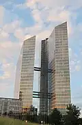With construction works finished in the same year as Hochhaus Uptown München, the two towers helped motivate the formation of a citizens' initiative aimed at preventing the development of further structures of this type and size. Leading architects criticized the buildings as "imported imitation architecture" and "faceless yard ware", while local residents expressed concerns related to the skyscrapers destroying the traditional cityscape.[7]
