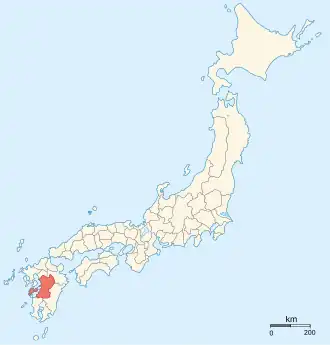 Higo Province (肥後国, Higo no Kuni; Japanese pronunciation: [çiꜜ.ɡo (no kɯ.ɲi), çiꜜ.ŋo-, çi.ɡoꜜ-, çi.ŋoꜜ-][1]) was an old province of Japan in the area that is today Kumamoto Prefecture on the island of Kyūshū.[2] It was sometimes called Hishū (肥州), with Hizen Province. Higo bordered on Chikugo, Bungo, Hyūga, Ōsumi, and Satsuma Provinces.