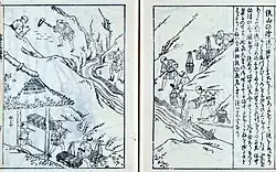 The River Hii significantly changed its course and transformed the land several times during last 7 millennia.[6] Alluvial deposits carried by the river joined the Shimane peninsula to the mainland, which may have been represented in the "Kunibiki-shinwa" myth.[6][7] Since the 17th century it flows into lake Shinji, and since the early 20th century continues to the Sea of Japan.[6][7] Hii river frequently caused floods in its catchment. On the other hand, it was and currently is an important source of drinking and irrigation water.[6][7] During the Edo period the upper Hii catchment was the largest iron-producing region in Japan.[8] Nowadays the river is dammed for the production of hydropower. The largest dams are Obara and Hinobori.[7]