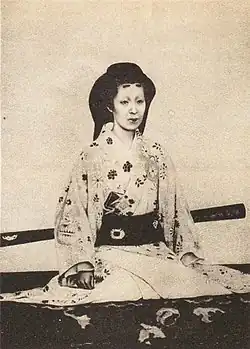 Beginning in the Edo period (1603–1867), both hikimayu and ohaguro transitioned into a practice seen only on married women.[3] In the latter half of the 19th century, the Japanese government ended its policy of isolationism and started to adopt Western culture. Eyebrows painted on the forehead and blackened teeth were considered no longer appropriate for modern society, and in 1870 hikimayu and ohaguro were banned.[3]