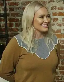On January 15, 2014, Duff signed on to co-star opposite Sutton Foster in the comedy-drama pilot Younger. The series is based on a Pamela Redmond Satran novel, and created and executive-produced by Darren Star for TV Land. Duff was cast as Kelsey Peters, an "ambitious 20-something" who persuades Foster's character to work in a publishing firm.[119] In April 2014, it was announced that the pilot was picked up for a series with a 12-episode deal.[120][121] The show marked Duff's first starring role in a television series since her appearance on Lizzie McGuire.[122] Younger premiered on March 31, 2015.[122] The series received generally positive reviews from critics and her performance as Kelsey Peters earned her acclaim. It earned her nominations for Favorite Cable TV Actress at the 2016 and 2017 People's Choice Awards, two Teen Choice Awards nominations, and a nomination for the Gracie Allen Awards.[123][124][125][126][127][128]