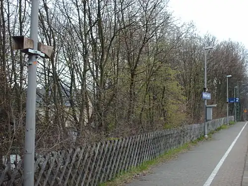 Hilden Süd station is in the city of Hilden in the German state of North Rhine-Westphalia. It is on the Düsseldorf–Solingen railway, which was opened on 3 January 1894 by the Prussian state railways.[6] The station was also opened in 1976 or 1977[5] and it is classified by Deutsche Bahn as a category 5 station.[1]