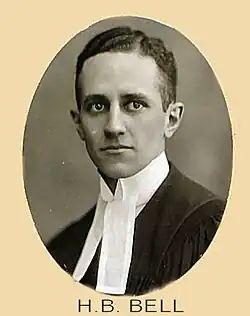 Bell returned to his law studies in Toronto, graduating from Osgoode Hall and being called to the Bar of Ontario in 1921. He was appointed King's Counsel in 1935, and practised as a lawyer until his death in hospital in Toronto on 16 September 1960.[3][4][14]