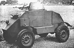 The Hillman Gnat was designed around 1940 as a two-man light armoured car, it was intended to replace machine gun armed, unarmoured motorcycles that were fielded in significant numbers by the British Army, but were going out of favour at the time. The Gnat's development, along with the Morris Salamander, was sponsored by the then Brigadier Vyvyan Pope.[1][2]