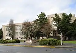 In 1929, a new high school building was completed, with additional buildings and the wings added in later years.[11] Located near downtown Hillsboro, at NE Sixth Avenue and Lincoln Street, the site became a junior high once the current campus was built beginning in 1969.[11] In 1970, the new senior high school campus opened on 48 acres (190,000 m2) on the south side of Hillsboro, with enrollment of the high school district reaching 3,621 students that year.[11] Students complained that the new layout that consisted of classrooms spread out over the campus instead of a single central building was a poor choice for Oregon’s rainy and cold winters.[11]