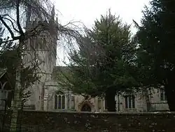 A war memorial window of 1920, on the north side, is by Morris & Co.[17] A Lady Chapel was added in the 1950s, and has the altar from St Peter's at Highway.[17] The church was designated as Grade I listed in 1960.[15] The tower has six bells, ranging in date from the 15th century to 1874.[18] Today St Laurence's is part of the Woodhill benefice, a group of four parishes.[19]