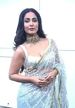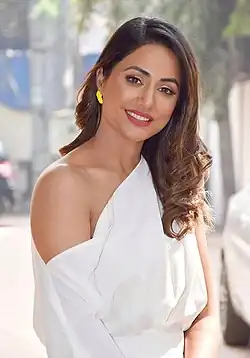 Hina Khan (pronounced [ˈɦiːnaː kʰaːn]; born 2 October 1987)[1] is an Indian actress who appears in Hindi and Punjabi films and television. Noted for her versatility across genres—from family dramas and reality shows to psychological thrillers. One of the highest-paid television actresses in India,[2][3] She is a recipient of several accolades including three ITA Awards, three Indian Telly Awards and seven Gold Awards.[4]