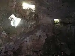 The cave is lit by sunlight which filters through holes in the ceiling. The underground lake is a popular swimming spot, but it has been known to test for high levels of various pollutants, since it is fed by ground runoff.