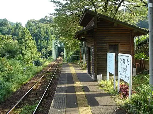 Hinata Station (日当駅, Hinata-eki) is a railway station in the city of Motosu, Gifu Prefecture, Japan, operated by the private railway operator Tarumi Railway.[1]