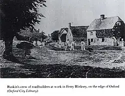 The art critic John Ruskin (1819–1900) used to walk between Abingdon, where he stayed at the Crown and Thistle, and Oxford.[9] He found the path muddy and organized a party of undergraduates to improve the roadway in the Hinksey area.[10]