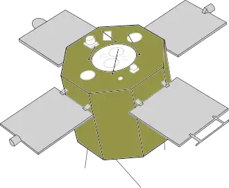 Hinotori, also known as ASTRO-A before launch, was a Japanese X-ray astronomy satellite. It was developed by the Institute of Space and Astronautical Science (ISAS). Its primary mission was to study of solar flares emanating from the Sun during the solar maximum.[3] It was launched successfully on February 21, 1981 using a M-3S rocket as the vehicle from Uchinoura Space Center (known at the time as Kagoshima). After the start of normal operation, it observed a large solar flare and, a month later, succeeded in observing 41 flares of many sizes from the Sun. It reentered the atmosphere on July 11, 1991.[4] The name Hinotori is the Japanese word for Phoenix.