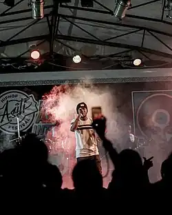 ![]() Dizasta Vina [1] performs at Hip hop Festival Asili in June 2023 | |