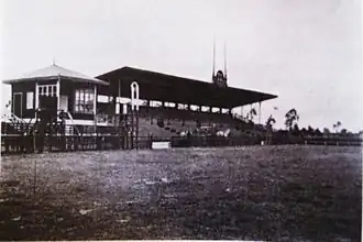 It was inaugurated by Francesc Rius i Taulet, then mayor of Barcelona, on 23 September 1883, with the sponsorship of the Barcelona Equestrian Club and the Foment de la Cria Cavallina. The grand opening of the Hippodrome happened on the occasion of the patron saint festivities of La Mercè, and it was attended by 3000 people and 300 carriages, being one of the social events of the year.[2] It was located on a dried-up piece of land of the old lake of the port of Barcelona, with dimensions of 9 hectares and a capacity of up to 2,500 spectators.[2] Getting to the racetrack was no easy task. On the Camí del Morrot, stones fell from the Montjuïc mountain and it was dangerous. The residents of the area lived it as a major holiday. They filled up the streets and children waited for the carriages to pull up so that visitors to the hippodrome could give them candy.[3]