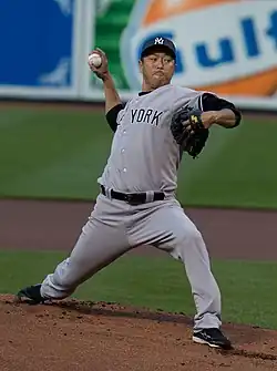 Hiroki Kuroda (黒田 博樹, Kuroda Hiroki; born February 10, 1975) is a Japanese former professional baseball pitcher. He pitched in Nippon Professional Baseball (NPB) for Hiroshima Toyo Carp from 1997 to 2007 before playing in Major League Baseball (MLB) for the Los Angeles Dodgers from 2008 to 2011 and New York Yankees from 2012 to 2014. After the 2014 season, he chose to return to the Carp to finish out his career.