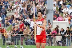 Hiroki Ogita (荻田 大樹, Ogita Hiroki; born 30 December 1987) is a Japanese athlete who specialises in the pole vault.[2] He competed in the pole vault event at the 2015 World Championships in Athletics in Beijing, China. He finished 21st in the pole vault event at the 2016 Summer Olympics in Rio de Janeiro, Brazil.[3]