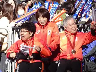 ![]() Hiromi Endo (left) at Paris 2024 Summer Olympians and Paralympians Japan National Team parade event on November 30th, 2024, with her mother Satomi Endo (center) | |||||||||||||||||||||
