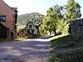 Hirsau's economy includes small retail establishments, tourism, and light industry. There is a saw mill on the Ernstmuhlerweg, the road that runs along the railroad in the post card pasted above. The saw mill is a long building at the upper edge (in the picture) of town.