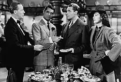 While producing Only Angels Have Wings (1939), Howard Hawks tried to pitch a remake of The Front Page to Harry Cohn of Columbia Pictures. Cary Grant was almost immediately cast in the film, but Cohn initially intended Grant to play the reporter, with radio commentator Walter Winchell as the editor.[5] Hawks' production that became His Girl Friday was originally intended to be a straightforward adaptation of The Front Page, with both the editor and reporter being male.[b] During auditions, Howard Hawks' secretary, a woman, read reporter Hildy Johnson's lines. Hawks liked the way the dialogue sounded coming from a woman, resulting in the script being rewritten to make Hildy female and the ex-wife of editor Walter Burns played by Cary Grant.[7] Cohn purchased the rights for The Front Page in January 1939.[8]