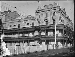 During construction, questions were publicly raised about the stability of the building's foundations in light of the water table on the site and the presence of a subterranean stream.[10] Liebe conferred with the architect and engineers before developing a revised design which featured drains to divert running water.[10] Liebe presented the modified plans to Molloy and proceeded with them, assuming that he had the consent of Molloy.[11] Construction progressed, and the building was completed on schedule.[12] When the time finally came for Molloy to pay Liebe for the construction, a dispute arose as to who should be liable for the extra £A 17,000 (equivalent to A$3 million in 2022) incurred in remedying the structural defect.[7][13] Molloy was reputed to be one of the most litigious businessmen in Perth,[14] and refused to pay higher than the original agreed price,[13] on the basis that the contract required his written approval for extra work to be carried out.[15] Liebe pursued him through the courts all the way to the High Court and Privy Council.[13] The Privy Council eventually ruled in favour of Liebe, however the legal costs he had incurred were exorbitant.[13]