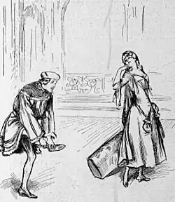 Although this would be his only comic opera, The Times called Mackenzie's score "appropriate throughout, musicianly, and very often marked by distinction as well as humour," though it called the book dull and "confused".[7] Other newspapers called Mackenzie's score "a comic oratorio",[8] "devoid of memorable tunes"[9] or "peculiarly unattractive, almost entirely devoid of humour, strangely wanting in charm, brightness, fizz and spontaneity"[10] and opined that "some of the best lines were appropriated to the most severe music".[11] The press uniformly found fault with the verbose libretto and felt that the music and book were not well suited to each other. They praised Passmore's comic acting but were disappointed by the nervous Grossmith, commenting that he was unsuited to the role of King Ferdinand.[10]