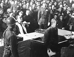 In February 1946, Tani was arrested on orders of the American occupation authorities and charged with Class B and Class C war crimes. At the request of the Chinese government, he was extradited to China to stand trial at the Nanjing War Crimes Tribunal in August 1946.[4] Tani denied all charges at the trial, stating that his troops kept discipline, and the area of Nanjing assigned to his division had been largely evacuated due to the ferocity of the battle. Furthermore, none of the witnesses against him could identify his unit numbers, and indeed the evidence presented to the court pertained to troops and areas of the city under General Kesago Nakajima and General Shigeharu Suematsu. However, the presiding judge refused Tani's request to call on his chief of staff and surviving junior officers as witnesses, and stated that since the various atrocities which occurred in Nanjing were testified to by hundreds of surviving witness as well as several foreigners from Nanking Safety Zone, he was unwilling and unable to divide responsibility. According to the ruling of the court, all of the Japanese commanders involved in the Battle of Nanjing had an equally shared responsibility for atrocities which occurred during the Rape of Nanjing, and this included Generals Iwane Matsui, Heisuke Yanagawa and Sadao Ushijima as well as Nakajima, Suematsu and Tani. He was consequently sentenced to death as a BC-class war criminal. On 26 April 1947 he was escorted to his execution spot at Mount Yuhuatai and publicly executed by shooting. The crowds of Chinese civilians who witnessed the execution were cursing at him for the atrocities he committed.[4][5]