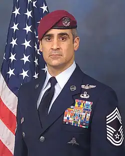 Chief Master Sergeant Ramón Colón-López is pararescueman who on June 13, 2007, became the first Hispanic, among the first six airmen, to be awarded the newly created Air Force Combat Action Medal, bestowed upon him by Air Force Chief of Staff General Teed Michael Moseley at the Air Force Memorial, in Washington, DC.[78] The medal was created to recognize Air Force members who are engaged in air or ground combat "outside the wire" in combat zones. Airmen who are under direct and hostile fire, or who personally engaged hostile forces with direct and lethal fire are eligible to receive the award. On March 11, 2004, Colón-López together with his Advance Force Operations Team and elements of the Afghan National Strike Unit, participated in an operation which required the capture of a high level target and a follow-on site exploitation with the intention of preventing the proliferation of chemical weapons. His helicopter came upon hostile enemy fire, however Colón-López continued on his mission which resulted in the capture of 10 of the enemy and the destruction of multiple rocker propelled grenades and small caliber weapons. In January 2005, after Colón-López returned to the United States, he was named Superintendent of Training and later Commandant of the Pararescue and Combat Rescue Officer School.[79]