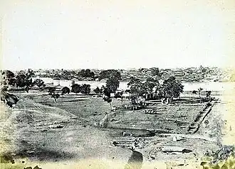 Ahmed Shah I laid the foundation of Bhadra Fort starting from Manek Burj, the first bastion of the city in 1411 which was completed in 1413. He also established the first square of the city, Manek Chowk, both associated with the legend of Hindu saint Maneknath. His Gujarat Sultanate (1411–1573) ruled from the city until 1484. His grandson Mahmud Begada transferred capital from Ahmedabad to Muhammadabad from 1484 to 1535 but carried out second fortification of the city. Later Ahmedabad again became capital of sultanate until it fell to Mughals in 1573. During Mughal rule (1572–1707), Bhadra Fort served as the seat of Governor of Gujarat. The city flourished with addition of several settlements in and around the city. Of the population of the city no estimate has been traced. There is some estimate of the size of city in works of the time: Ferishta, the Ain-i-Akbari, and the Mirat-i-Ahmadi. According to the Ain-i-Akbari (1580), there were 360 puras, of which only eighty-four were then flourishing; according to Ferishta there were, in 1600, 360 mahalla, each surrounded by a wall; the Mirat-i-Ahmadi in one passage says, such was once its populous state that it contained 380 puras, each pura a considerable quarter almost a city; in another passage he mentions twelve city wards and others outside, and in his detailed account of the city he mentions by name 110 suburbs of which 19 were settled under Mughal rule. German traveller Mandelslo (1638) mentioned the suburbs and dependent villages are nearly seven leagues round.[3] During Mughal and Maratha struggle (1707–1753) to control the city, the city was harmed and several suburbs were depopulated. The city walls damaged in battles and the trade was affected. The city revenue was divided between Mughal and Maratha rulers. Later during Maratha rule (1758–1817), the city revenue was divided between Peshwa and Gaekwad. These affected the economy of the city due to more extraction of taxes. In 1817, Ahmedabad fell under British Company rule which stabilized the city politically and improved the trade. The population rose from 80,000 in 1817 to about 88,000 in 1824. During the eight following years a special cess was levied on ghee and other products and at a cost of £25,000 (Rs. 2,50,000) the city walls were repaired. About the same time a cantonment was established on a site to the north of the city. The population rose (1816) to about 95,000. The remaining public funds after the walls were finished were used for municipal purposes.[4] The old city continued to be the centre of political activities during the Indian independence movement under Mahatma Gandhi.