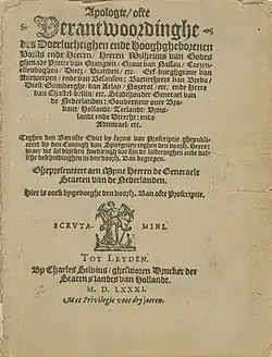 - ^ Stichting Gihonbron Middelburg, Apologie van Willem van Oranje Archived 28 September 2020 at the Wayback Machine, hertaling en evaluatie na vierhonderd jaar 1580-1980, Lannoo Tielt/Amsterdam 1980