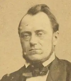Robert Fruin (1823–1899) was described by Albert van der Zeijden (2012) as the first Dutch historian who strove to apply the historical-critical method to vaderlandse geschiedenis ("fatherland/national/patriotic history", that is, the history of the Netherlands).[26] Van der Zeijden circumscribed his method as 'a careful investigation of authentic historical sources (usually state documents as well as letters and memoirs of important statesmen)' and 'an impartial, positivist manner of historiography'.[27] Fruin is said to have laid the basis for this approach in his speech The impartiality of the historian (1860) on the occasion of his appointment as professor at Leiden University.[27] This made him comparable to the German historian Leopold von Ranke (1795–1886), founder of the historism school.[28] Fruin did not always follow purely scholarly principles, however, but also pursued a nationalist-liberal agenda: history was to be viewed in national terms.[26] For the history of the Netherlands, this meant on the one hand that the staatse/Loevesteinian and prinsgezinde/Orangist traditions had to be reconciled with each other, and on the other hand that liberalism was supposed to function as an 'impartial' referee between Protestant and Catholic views.[26] Fruin focused on two periods: Tien jaren uit den Tachtigjarigen Oorlog (1857) for 1588–1598 and Het voorspel van de Tachtigjarigen Oorlog (1859) for 1555–1568. His early work showed a tendency towards staatse views, his later work had more Orangist undertones.[29]
