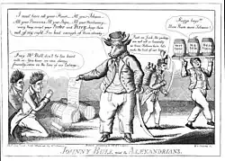 In 1814, during the War of 1812, the British military carried out a successful raid on Alexandria, which surrendered without a fight. In order to avoid the town's destruction, twenty-two merchant ships and large quantities of flour, tobacco, cotton, wine, and sugar were handed over by Alexandria's municipal authorities to the British.[7]
