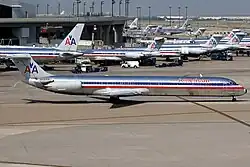 American had repeated run-ins with the FAA regarding maintenance of its MD-80 fleet, canceling 1,000 flights to inspect wire bundles over three days in April 2008 to make sure they complied with government safety regulations.[48] In September 2009, the Associated Press and The Wall Street Journal reported that American was accused of hiding repeated maintenance lapses on at least 16 MD-80s from the FAA. Repair issues included such items as faulty emergency slides, improper engine coatings, incorrectly drilled holes, and other examples of shoddy workmanship. The most serious alleged lapse is a failure to repair cracks to pressure bulkheads; the rupture of a bulkhead could lead to cabin depressurization. It is also alleged that the airline retired one airplane in order to hide it from FAA inspectors.[49][50] American began the process of replacing its older MD-80 jets with Boeing 737s and Airbus A319s and A321s.