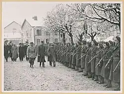 During World War II, German forces occupied Besançon on June 16, 1940, despite French efforts to destroy the city's bridges to hinder their advance.[60] Located in the occupied zone, near the demarcation line and within the prohibited zone, Besançon faced potential annexation to the Reich if Germany had won the war.[61] The city experienced limited destruction, with damage from a British air raid on July 15–16, 1943, targeting the Viotte district, resulting in 50 deaths, 40 serious injuries, and approximately 100 minor injuries.[62] Resistance activities began in 1942,[63] prompting German reprisals, including the execution of 16 resistance fighters at the Citadel of Besançon on September 26, 1943,[64] followed by 83 more executions. Allied forces, including the U.S. Army's 6th Corps, liberated Besançon on September 8, 1944, after four days of combat.[65] General de Gaulle visited the city on September 23, 1944,[66] followed by a joint visit with Winston Churchill on November 13, 1944.