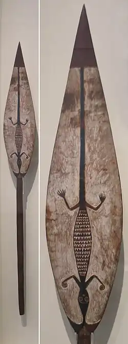 The first settlers of Bougainville were Melanesians, likely related to present-day Papuans and Aboriginal Australians. Approximately 3,000 years ago, a wave of Austronesian peoples arrived in Bougainville, bringing with them the Lapita culture.[5] The Austronesians brought with them a fully agricultural lifestyle, also introducing distinctive pottery and domesticated pigs, dogs and chickens to Bougainville.[6] The advent of the Lapita culture resulted in "a pattern of apparent extinctions of birds and endemic mammals".[7] Both Austronesian and non-Austronesian languages (historically called "East Papuan") continue to be spoken on Bougainville today. There has been substantial genetic and cultural mixing between the Austronesian and non-Austronesian populations, "such that language is no longer correlated with either genetics or culture in any direct or simplistic way".[8]