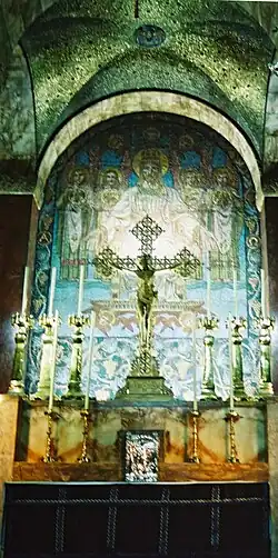 The first Catholic place of worship since the Reformation in Brighton was established above a shop in 1798;[94] it was one of the earliest in Britain.[93] In 1805 the priest in charge, a French émigré, started to raise money for a permanent building; a site on High Street, east of the Royal Pavilion and Old Steine, was found, and the Classical-style church was completed in 1807.[94] It was demolished in 1981.[95]