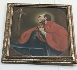 On Oct. 12, 1557, the Royal Court took possession of the fief, sending the governor Francesco de Bolea to Oria.[49] On the 29th of the same month, however, the fief was bought by Ferdinando Loffredo, marquis of Trevico and governor of Terra d'Otranto,[49] who sold it in 1558 for 11.250 ducats, to buy the fiefdom of Ostuni.[50] After Loffredo, the fiefdom was devolved to the Royal Court, and bought in 1560 by Pope Pius IV for his nephew Count Federico Borromeo.[51] In 1561 there were 836 families in the town.[34] On Federico's death, the fief was ceded in 1563[52] to Charles Borromeo (who became St. Charles from 1610); meanwhile, the deputy prince and general governor of the marquisate of Oria was Geronimo Maggiolino, who resided in Francavilla and held the office until 1568.[52] On September 30, 1566, Charles Borromeo signed the renewal of privileges, chapters and graces.[52] Borromeo never came to the fief, nor did he make any major changes in his possessions:[52] during the time he had the marquisate, a seminary was founded and some popular customs were forbidden. He appointed Ortensio Pagano as his advisor and treasurer. In early 1568, Charles Borromeo sold the fiefdom to Giovan Battista Castaneo, Archbishop of Cassano, for forty thousand scudi; writers of the time relate that the cardinal distributed all the proceeds of the sale to the poor of Milan in a single day.[53]
