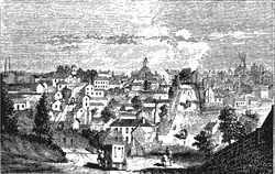 In the April 1839 issue of the Southern Literary Messenger, a traveler who had recently visited Knoxville described the people of the city as "moral, sociable and hospitable," but "with less refinement of mind and manners" than people in older towns.[27] In 1842, English travel writer James Gray Smith reported that the city was home to a university, an academy, a "ladies' school," three churches, two banks, two hotels, 25-30 stores, and several "handsome country residences" occupied by people "as aristocratic as even an Englishman... could possibly desire."[28]
