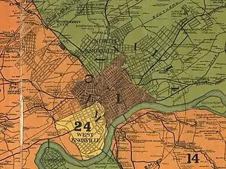 Knoxville in 1895, with North Knoxville and West Knoxville, which were separate cities until 1897