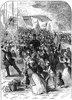 Harper's Weekly illustration showing Knoxville Unionists welcoming General Ambrose Burnside into the city in September 1863