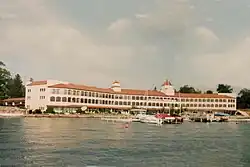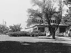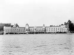 The South Shore Inn was a hotel built on the site of the old Vawter Park Hotel. During the 1950s and early 1960s, the hotel attracted visitors and patrons with a water ski jumping show. The South Shore Inn caught fire in the early morning hours of October 29, 1964. The location was just north of N. Southshore Drive and E. Vawter Park Road.