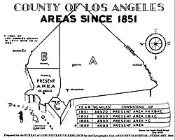 - ^ California Historical Survey Commission., Coy, O. Cochran. (1923). The genesis of California counties. [Sacramento]: [California State Print. Office, F.J. Smith, superintedent]. Appendix II: History of the boundaries of Los Angeles County, with map