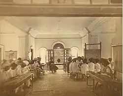 People from Maharashtra played an important part in the nationalist, social, and religious reform movements of the late 19th and early 20th centuries. Notable civil societies founded by Marathi leaders during 19th century include the Poona Sarvajanik Sabha, the Prarthana Samaj, the Arya Mahila Samaj, and the Satya Shodhak Samaj. The Sarvajanik Sabha took an active part in relief efforts during the famine of 1875–76, and is considered the forerunner of the Indian National Congress established in 1885.[108][109] The most prominent personalities of Indian Nationalism in the late 19th and early 20th century were Gopal Krishna Gokhale and Bal Gangadhar Tilak, who were on opposite sides of the political spectrum and both from Pune. Tilak was instrumental in using Shivaji and Ganesha worship to forge a collective Maharashtrian identity for Marathi people.[110] The Marathi social reformers of the colonial era include Mahatma Jyotirao Phule, his wife Savitribai Phule, Justice Ranade, feminist Tarabai Shinde, Dhondo Keshav Karve, Vitthal Ramji Shinde, and Pandita Ramabai.[111] Jyotirao Phule was a pioneer in opening schools for girls and Marathi Dalit castes.