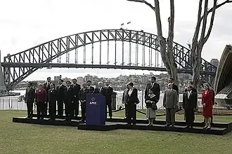In 1973, after a long period of planning and construction, the Sydney Opera House was officially opened. The building was from a design by Jørn Utzon. It became a symbol not only of Sydney, but of the Australian nation and was inscribed by UNESCO in 2007.[69] Sydney has maintained extensive political, economic and cultural influence over Australia as well as international renown in recent decades. The city hosted the 2000 Olympic Games, the 2003 Rugby World Cup and the APEC Leaders conference of 2007. From 1991 to 2007, Sydney-siders governed as Prime Minister of Australia—first Paul Keating (1991–1996) and later John Howard (1996–2007).