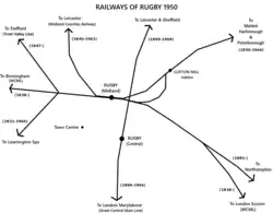 For nearly 30 years, nearly all rail traffic between London, the Midlands, the north of England, Scotland, and north Wales passed through Rugby junction, giving the town huge national importance.