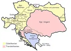 Following defeat by Napoleon in 1805, the Austrian Empire was forced to cede the northern part of Tyrol to the Kingdom of Bavaria in the Peace of Pressburg. It became a member of the Confederation of the Rhine in 1806. Tyrol remained split between Bavaria and the Napoleonic Kingdom of Italy until it was returned to Austria by the Congress of Vienna in 1814. Integrated into the Austrian Empire, from 1867 it was a Kronland (Crown Land) of Cisleithania, the western half of Austria-Hungary.