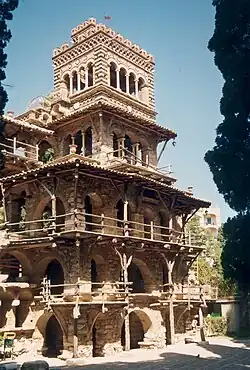 The wealthy and well connected Florence Trevelyan settled at Taormina in 1884, staying first at the famous Hotel Timeo.[25][26] She loved birds (and dogs, but was not fond of cats) and purchased Isola Bella, now a nature reserve, to protect the sea bird habitat. In 1890 she married Salvatore Cacciola, a doctor and for many years mayor of Taormina.[27] She built as her marital residence a substantial villa on Via Teatro Greco,[28] now known as Palazzo Acrosso-Papale.[29] She bought hillside land and created an urban pleasure garden, with shade and views,[30] which after her death became a public municipal park.[31][32]