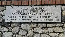 A plaque memorial to the people who lost their lives in the raids is located in Sant'Antonio Square outside Porta Catania.